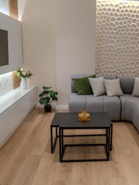 I loved the apartment very much! It's located in the middle of Lungomare, like 10-15 mins walk from the city center. All the best restaurants and bars are near, and the beach is just across the street. The apartment has everything we needed for adult travellers. It's spacious, clean and fresh, and has comfy furniture and modern appliances like AC, coffee machine, fridge, TV, etc. The dinnerware and glasses are amazing - everything is new and stylish. Two separate balconies have great sea and Lungomare view. There are two bathrooms, which is very convenient when staying with a family. Also, the check in/checkout is smooth and easy, same as the communication with the host..